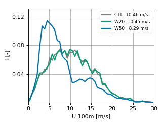 100-m Wind speed frequency distributions